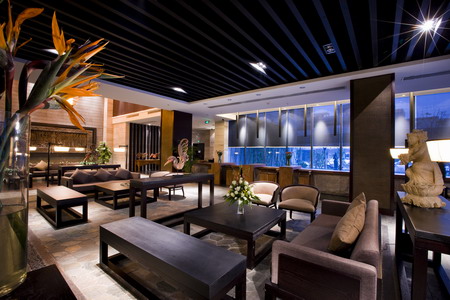 全景式的整体设计,充满异域风情的装饰和点缀,四尊亭亭玉立、多姿曼妙的美女神像注水的总台背景,您可以在品味独特风格的同时,感受我们为您精心营造的这一份优雅和宁静。全开放式的近三十米的前台,融接待、酒吧、商务于一体,一站式的前厅服务、耳目一新,风格独特的大堂休闲吧、功能齐全的商务接待服务项目,在这里,您可以感受一份独特与清新。