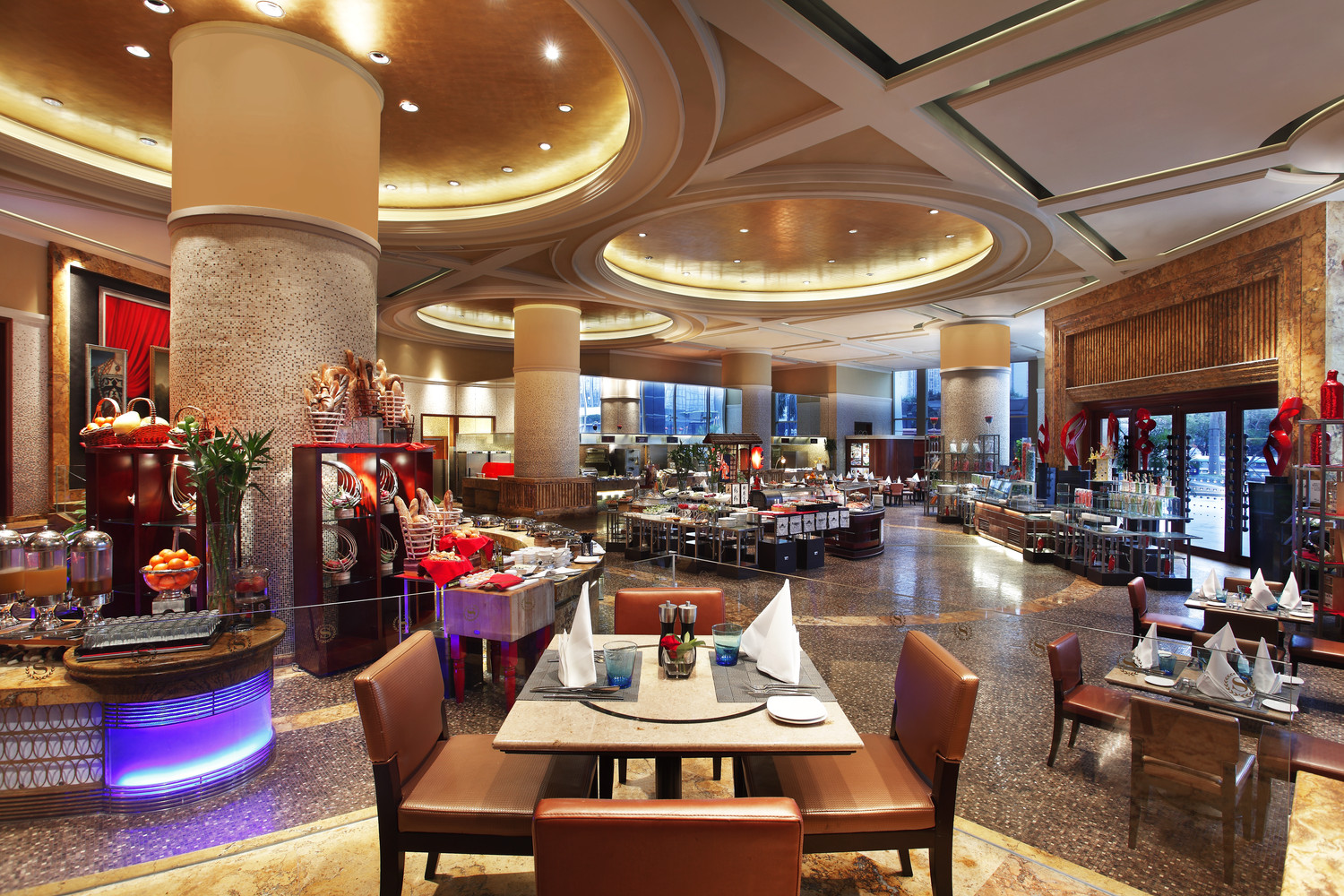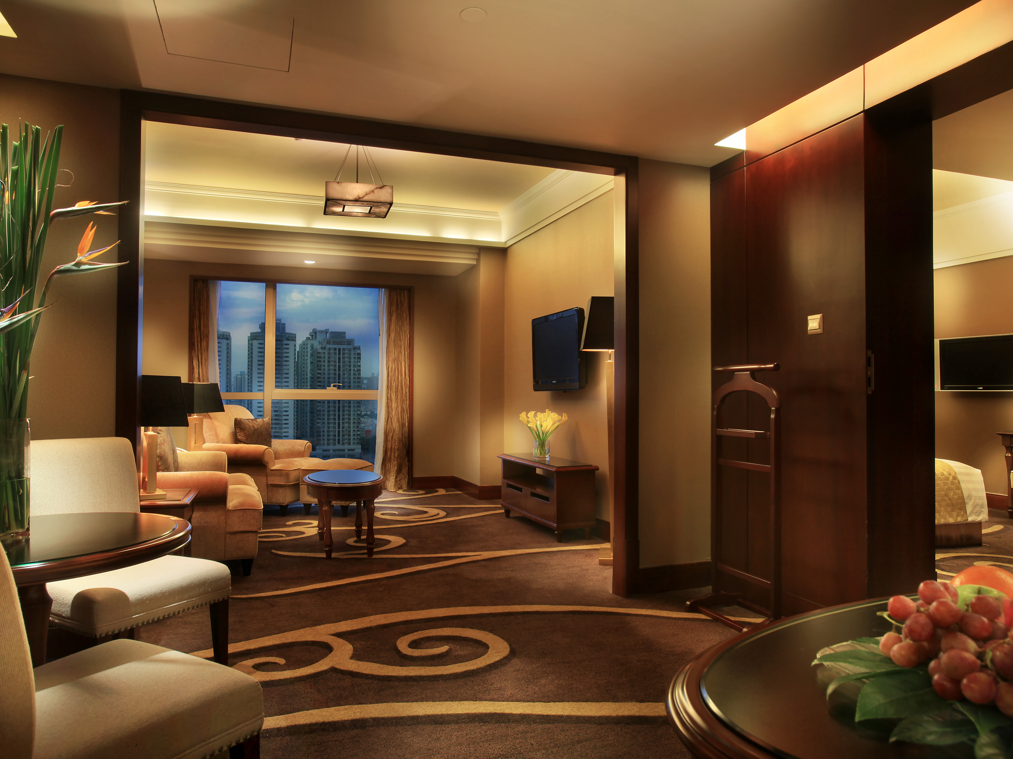 酒店由两栋塔楼组合而成,拥有354间典雅舒适的客房及套房,拥有多个风味餐厅、时尚酒吧及酒廊,更有超过5000平方米的超大宴会场地,在这里您可以品尝到星级厨师的精心出品菜肴,体验全城最具规模的宴会厅及27间独立的会议室。