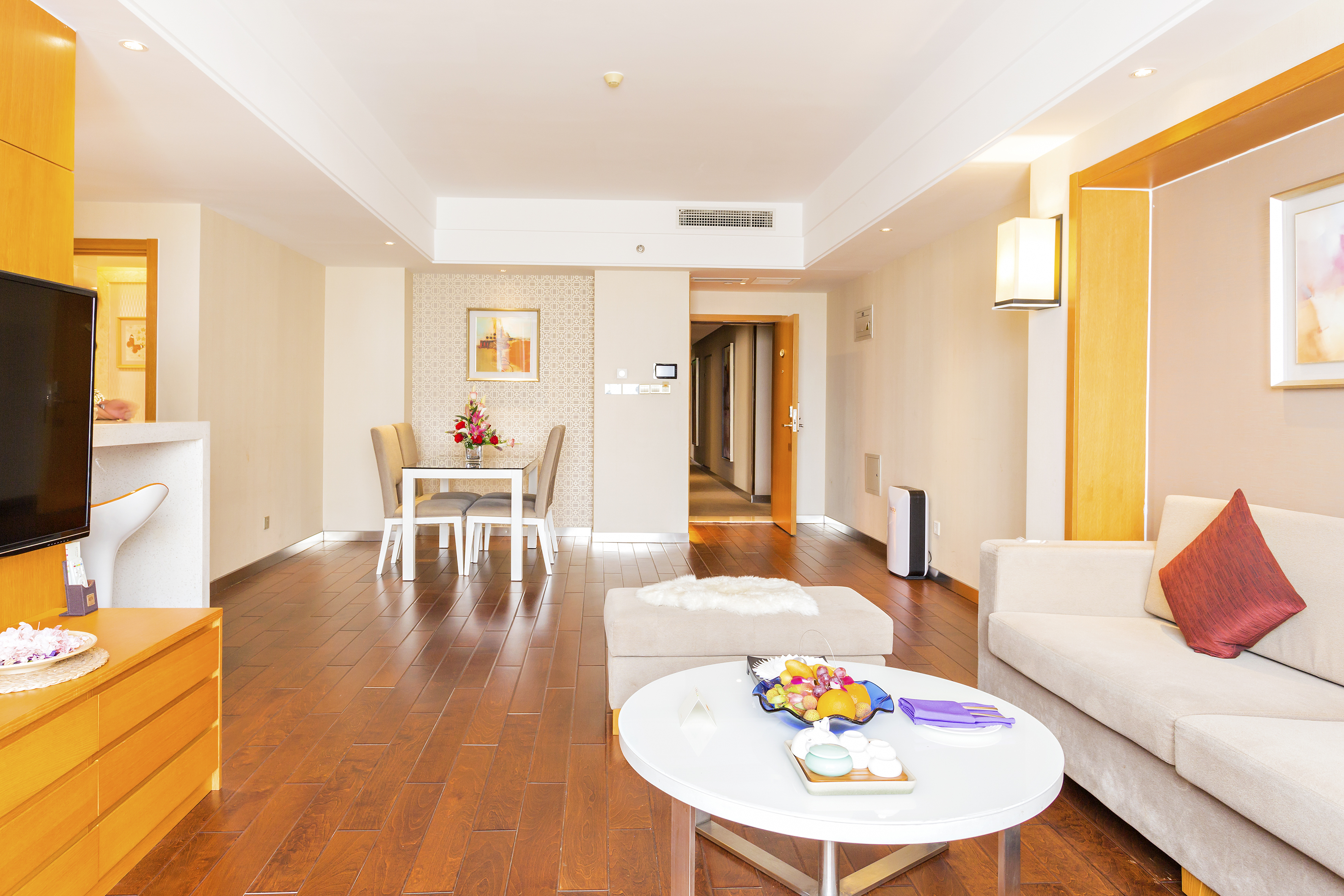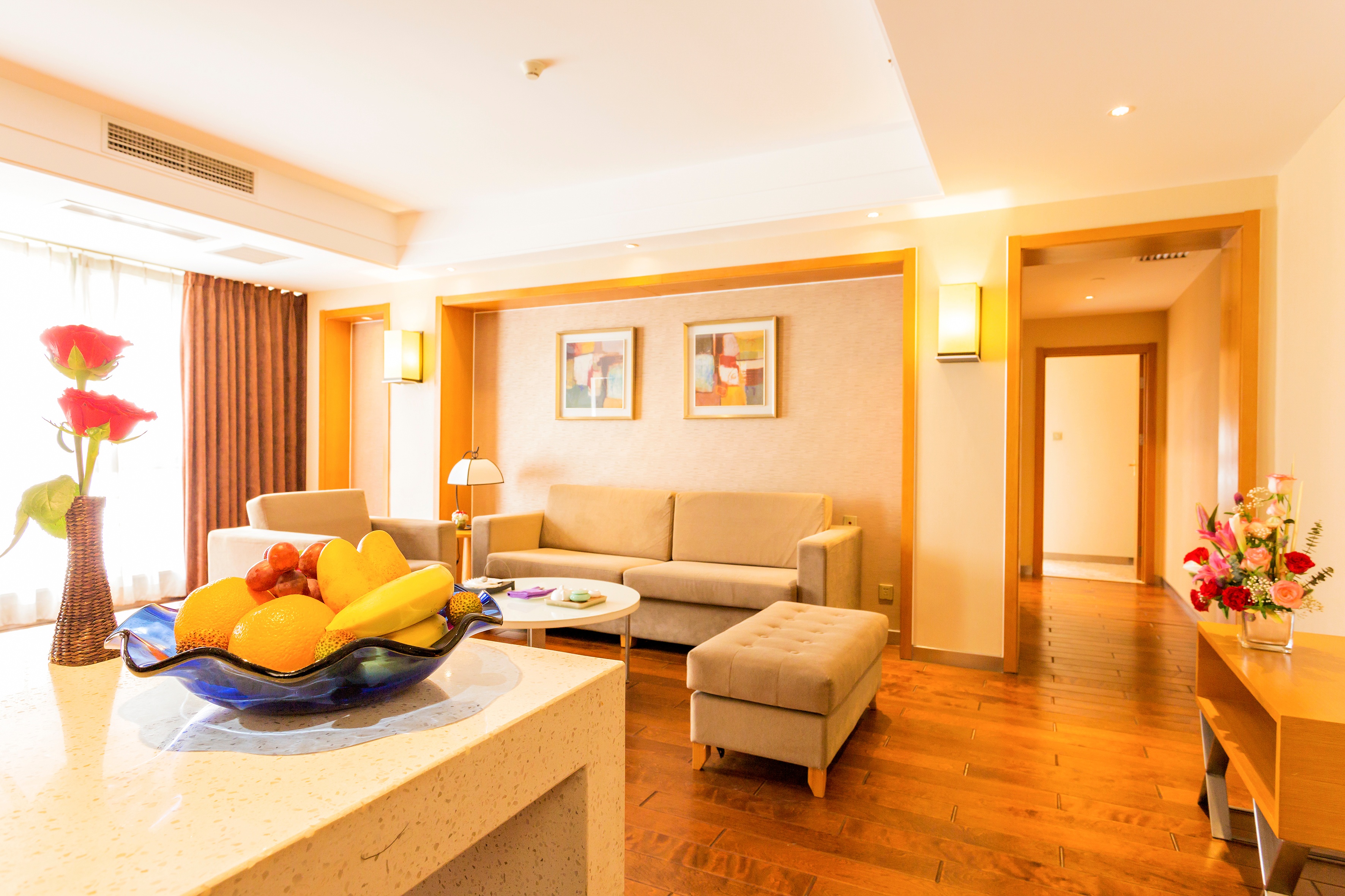 酒店一期拥有独立的公寓套房240间(套),房间配有全套厨房设备,既满足高档商务配套,又营造舒适温馨的居家感觉;装修时尚典雅的咖啡厅和特色餐厅,可分别接待200-300人的大中小型宴会或自助餐;酒店拥有完善的商务会议设施,不同规模的会议室,设备先进,可接待200余人的各种会议;酒店康乐设施一应俱全,休闲书吧、健身房等各类娱乐项目,让您在幽雅舒适的环境中体验到全身心的放松,无论是长居短住都是您理想的选择。