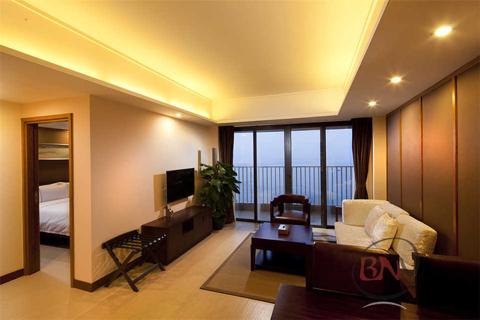 酒店设有客房279间,会议室、中餐厅、宴会厅、大堂吧等一应俱全;充满个性化的儿童、青年及老年人的休闲娱乐设施;帆艇码头、山地自行车道、开心农场、拓展训练、滨海栈道及美女照镜沙滩、滨海酒吧街等,让您充分体验山、湖、林、海、岛的全时四驱度假方式,畅享慢生