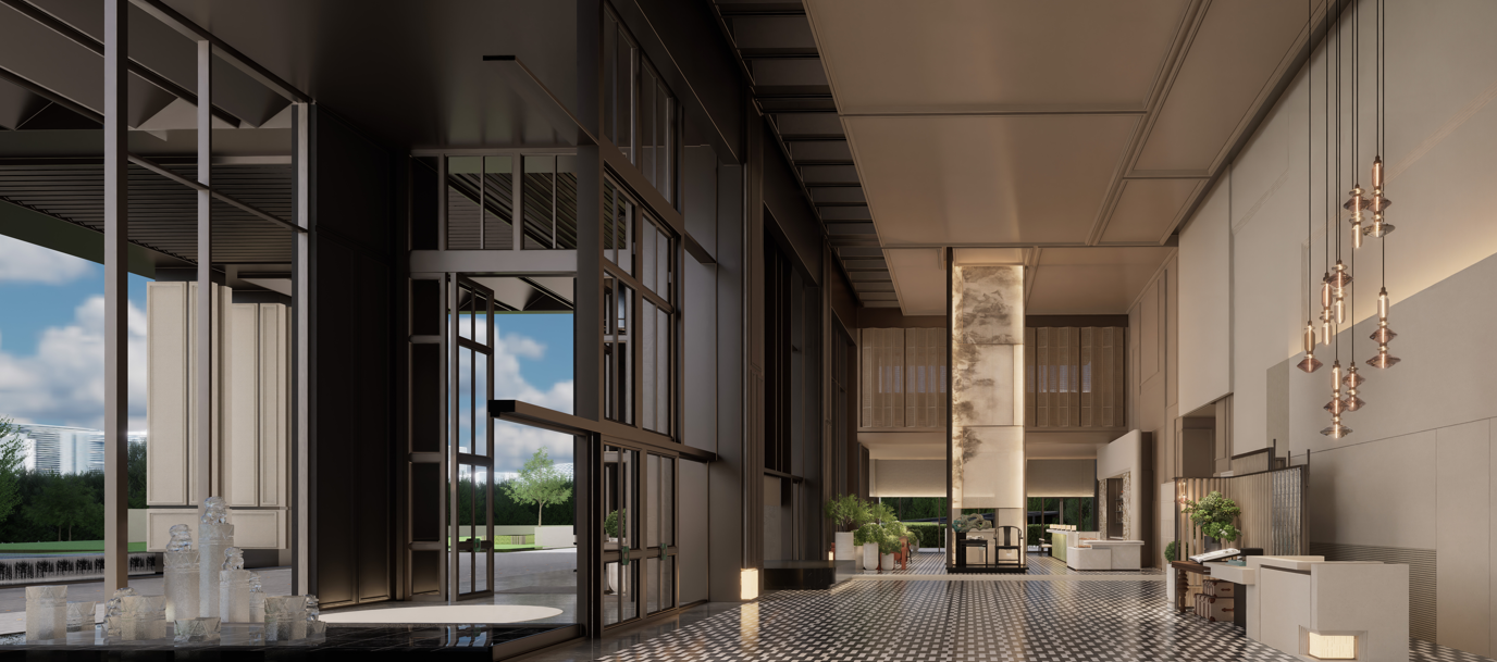 自贡华商希尔顿逸林酒店坐落于自贡高新区南湖生态城的华商国际城CBD核心位置。以“盐商府邸”为设计灵魂,巧妙融合自贡千年井盐文化与现代雅奢美学,致力于打造集商务、旅居与文化体验于一体的城市新地标。