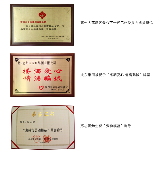 “太东”始创于1992年,是大亚湾区最早的民营企业之一,通过二十多年的稳健发展,目前太东集团产业涉及投资、地产、建设、供应链、资源、金融六大领域,拥有全资、控股、参股企业四十多家,逐步发展成以实业为核心的多元化控股、参股企业。多年来,太东集团诚信经营,稳健发展,形成立足惠州,布局北京、广州、深圳和港澳地区多地联网协同发展的产业格局。