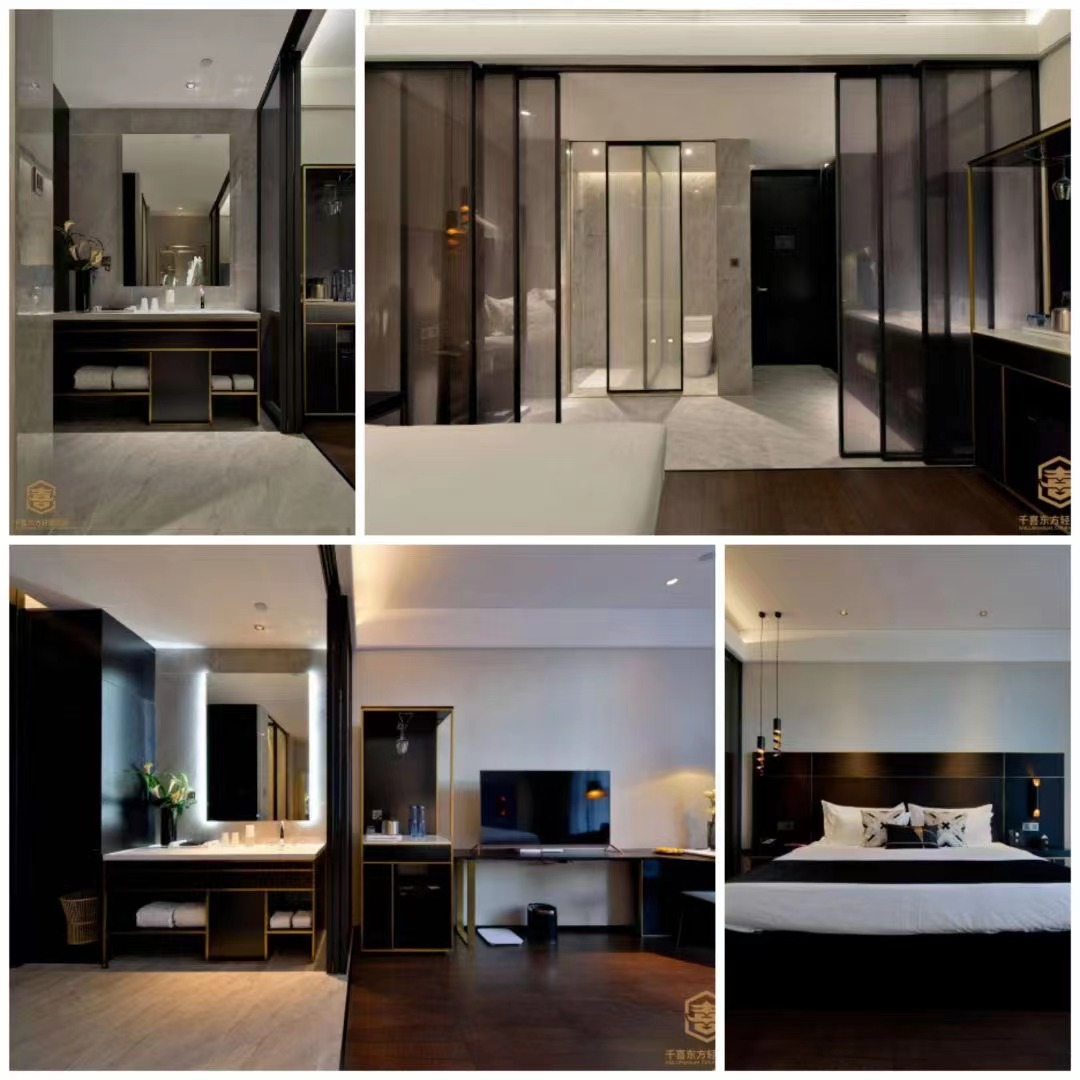 酒店总高9层,客房200余间,配备小型会议室、洗衣房、全自助早餐厅精品轻奢酒店。酒店大堂设计理念含蓄典雅,精致华美,提供休闲娱乐空间,独特香氛设计,使进入酒店的客人感受到商务、惬意、低调奢华,大床房双床房,房间约25平米左右,套房55平米。房内装修以黑金配色为基调,宁静豁达,床品采用全鸭绒高密度亲肤系列,沃尔玛直采施华蔻洗护用品,呵护您的无忧睡眠,房间24小时热水不间断,即开即出,房间专享百兆光纤的高速无线网络,流畅无卡顿,提供24小时7天全天候温情服务,让您随心随处体会宾至如归。