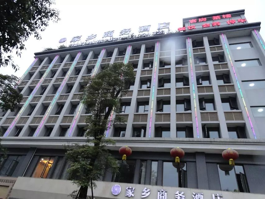 彭山家乡商务酒店是一家星级标准的商务性酒店,是家乡商务酒店管理有限公司管理的一家商务精品酒店,酒店配套客房,会务,茶楼,餐饮,停车等服务。中央空调,中央热水,地暖,Wifi网络,电脑等设施先进功能齐全。酒店座落于彭山商业繁华的彭祖大道锦江段,与锦江学院毗邻,酒店距离彭山中心车站仅三分钟车程,距离成雅高速路口五分钟车程,距离火车站仅十分钟车程,距离轻轨站仅六分钟车程,交通极为便利。酒店装修风格现代时尚,并以先进的设施和优雅的环境营造出尊贵的品味和浓厚的家乡特色。 彭山家乡商务酒店建筑总面积3300多平方米,酒店装修风格现代时尚,并以先进的设施和优雅的环境营造出尊贵的品味和浓厚的家乡特色。1楼为总台接待大厅和餐厅,接待大厅宽敞舒适,装修豪华,并充分体现了彭山印象的主题。餐厅主要提供客房宾客早餐以及经营彭山最具特色家乡菜肴,可同时容纳60人用餐,酒店力求绿色生态、健康美味。2楼为茶楼和会议室,茶楼设有各式包房,茶楼大厅格调高雅,为宾客提供商务洽谈或休闲棋牌等服务。会议室可同时容纳40人进行商务会议,配备中央空调、多媒体电脑投影仪、音响会议系统、互联网宽带接口等,并提供全程细致服务,是宾客公司会务、产品展示的理想选择。客房位于3-8楼,拥有多间各式商务型客房,每个房间的窗户设计高档玻璃落地窗,可欣赏迷人景观,拉门镜面衣柜,独立豪华玻璃浴室,中央空调,中央热水,高速宽带上网接口,电脑,多个频道液晶电视,房间宽敞,温馨,舒适。8楼设豪华商务套房两间,设施设备品味高雅、完善,环境幽雅,生态木屋式别墅建筑,有私家花园,小桥流水曲径通幽,绿树成荫胜似世外桃源,是尊贵宾客的理想选择。 酒店开业时间2012年12月,主楼高7层,客房总数62间(套)。