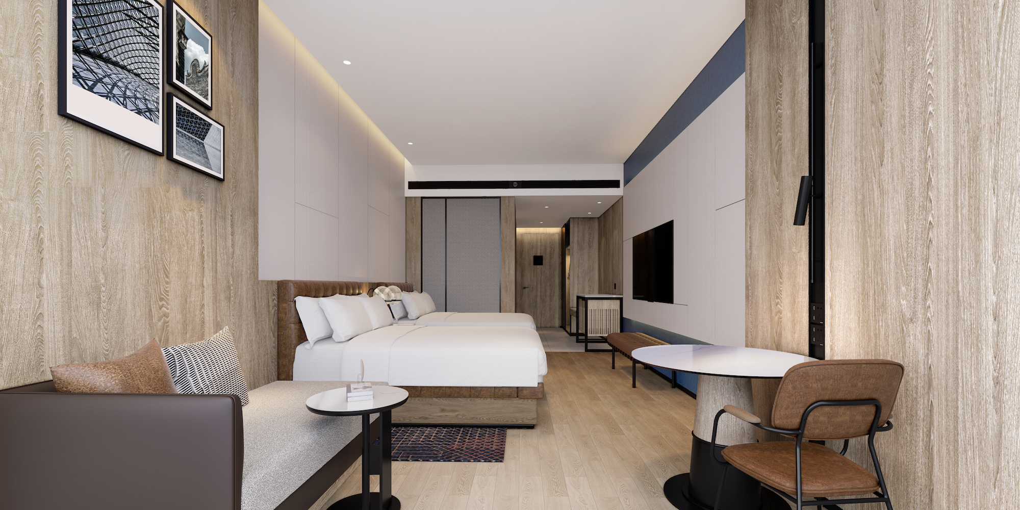 配套设施延续品牌“实用且贴心”的定位:专业会议空间满足商务洽谈、小型活动等多元需求,保障高效办公;全天候健身房让宾客无需迁就行程,随时释放活力;自助洗衣房则以便捷服务解决旅居生活琐碎。整体空间从设计到功能,均深度契合福朋喜来登的经典基因,最终打造出兼具品牌辨识度与在地特色的舒适旅居空间。
