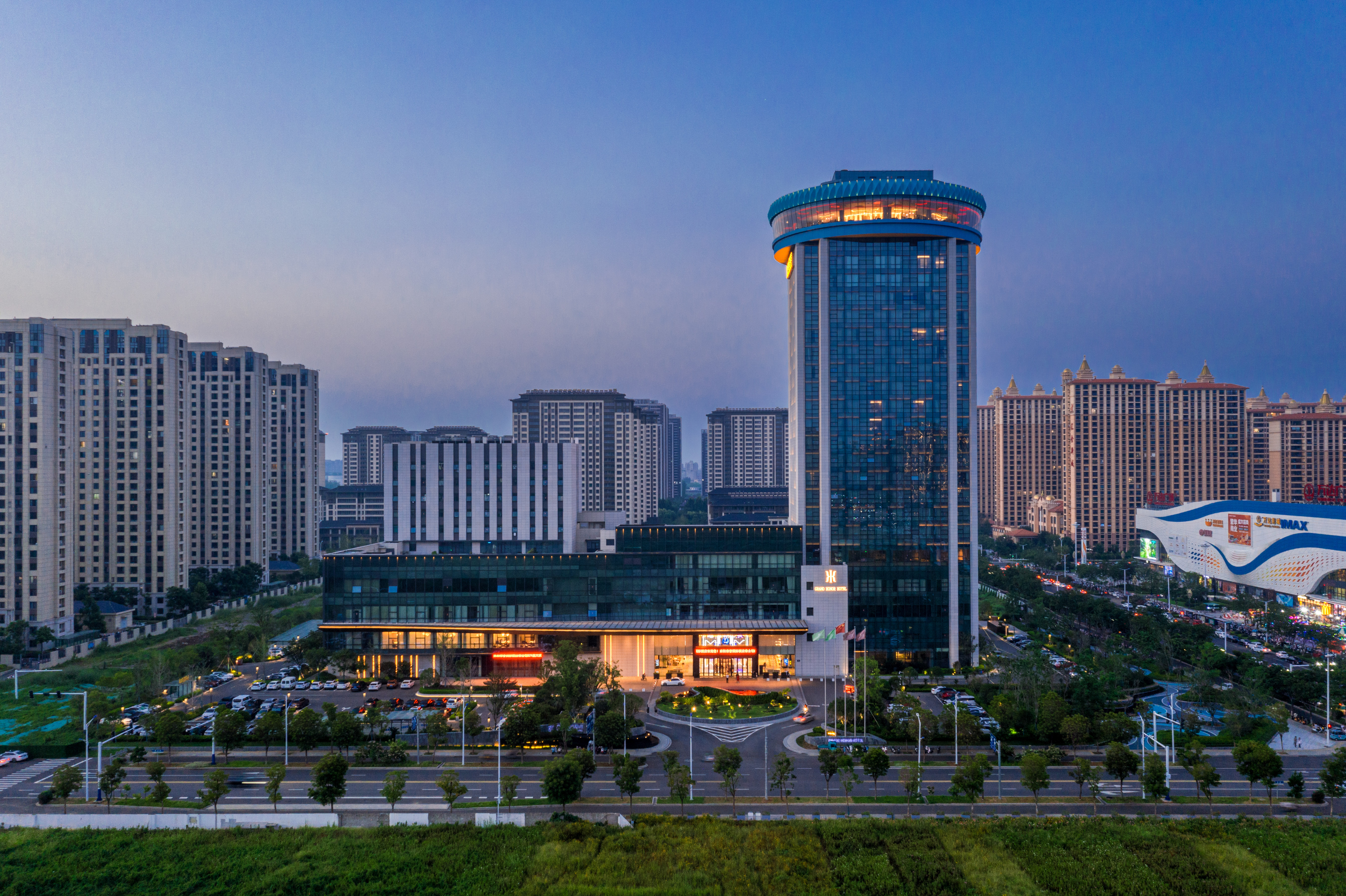酒店总高100米,主楼建筑共23层,总建筑面积约7.4万平方米。坐拥新区南湖公园与万达广场,致力引领并打造城南荣誉新商业经济圈。