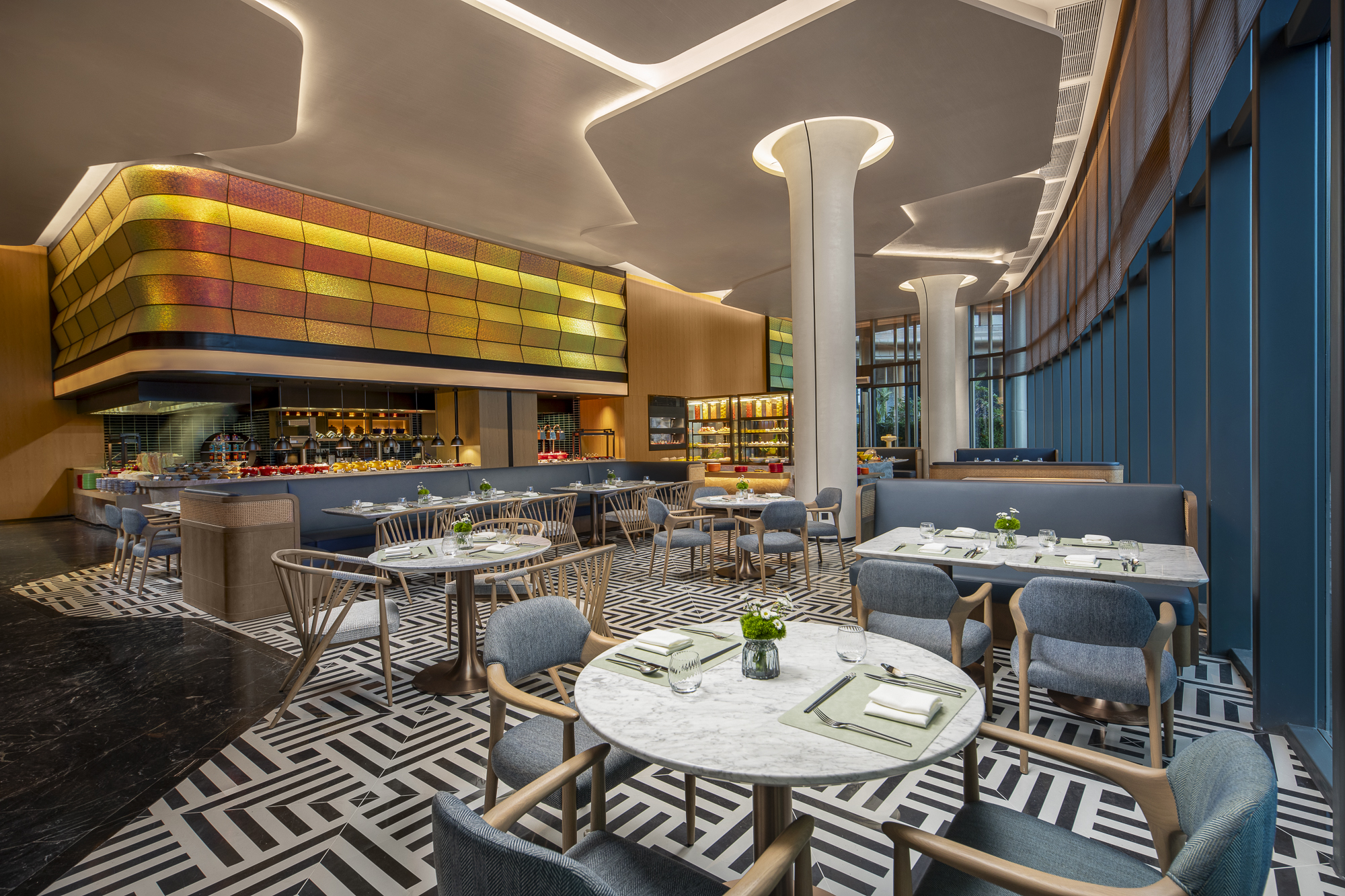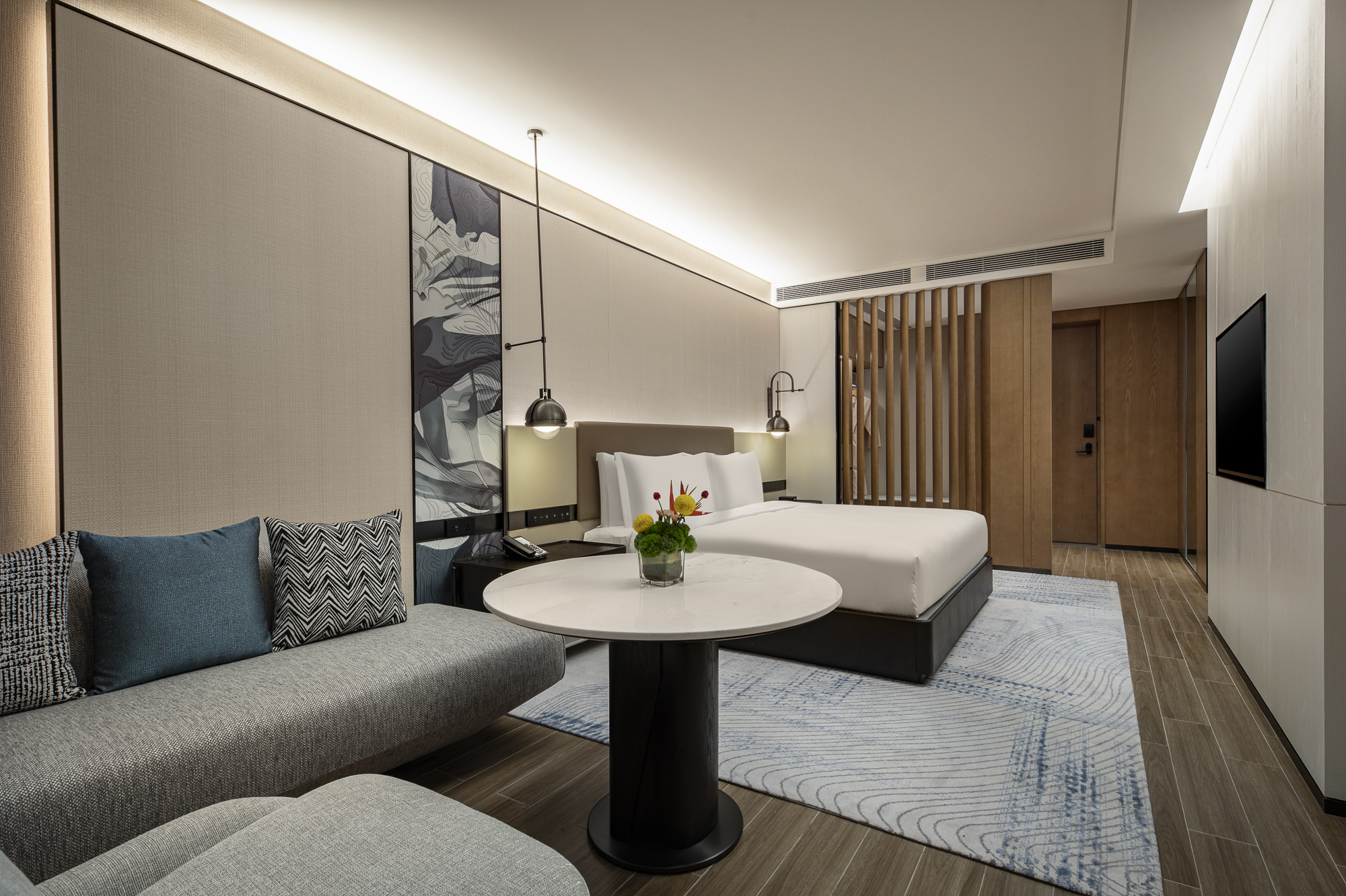 207间摩登雅致的客房及套房,80%的客房面朝大海,可在阳台上欣赏最美日落,完善的客房设施和精心设计的空间,让您专注高效地投入工作之余,拥有一段悠闲放松的时光。