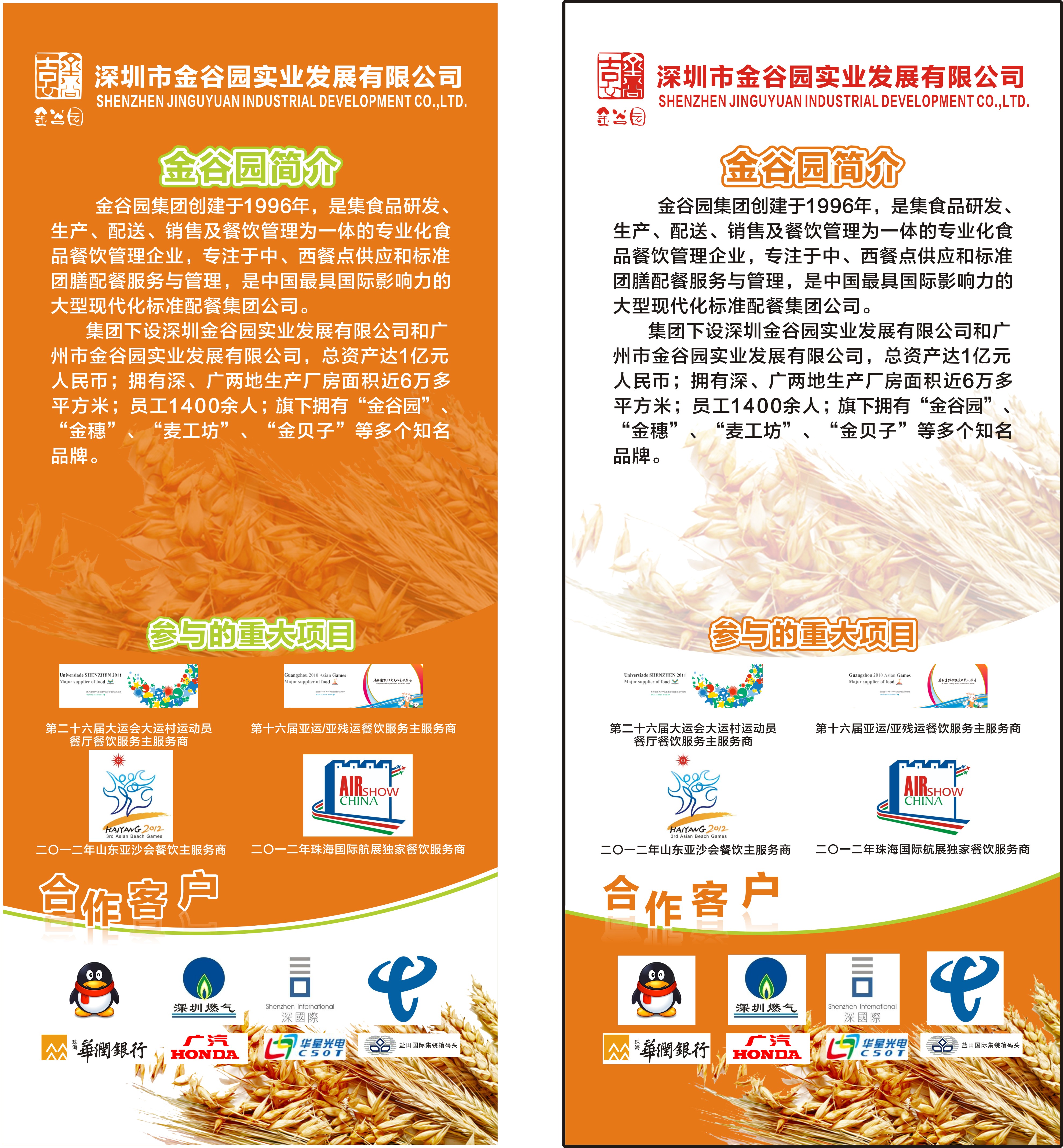 公司总部设在深圳市天安数码城创新科技广场2期702室,公司于2002年在深圳风景秀丽的西丽湖畔投资4000多万元建设了符合GMP标准现代化生产厂房,继而于2007年在广州经济开发区投资3000万元建立生产基地,引进了瑞典全自动隧道炉烘焙生产线、荷兰全自动蛋糕生产线、日本AIHO株式会社全自动快餐生产线等代表国际一流水准的生产设备,产品涵盖中西式糕点、营养快餐等100多个品种。公司已经发展成为一个拥有多家全资子公司和机构的实业型企业,旗下拥有“金谷园”、“金穗”、“麦工坊”、“金贝子”等多个知名品牌。