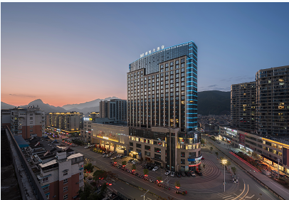 庆元明悦大酒店是由浙江茗悦商业股份有限公司按照国家四星级标准投资兴建。酒店占地总面积30000平方米,坐落于庆元县中心,建筑高度90米,地上23层,地下2层。酒店共有客房215间,共有1800多个餐位,可承接千人的大型宴会,是集餐饮、客房、康体、娱乐等功能于一体的综合性豪华酒店。