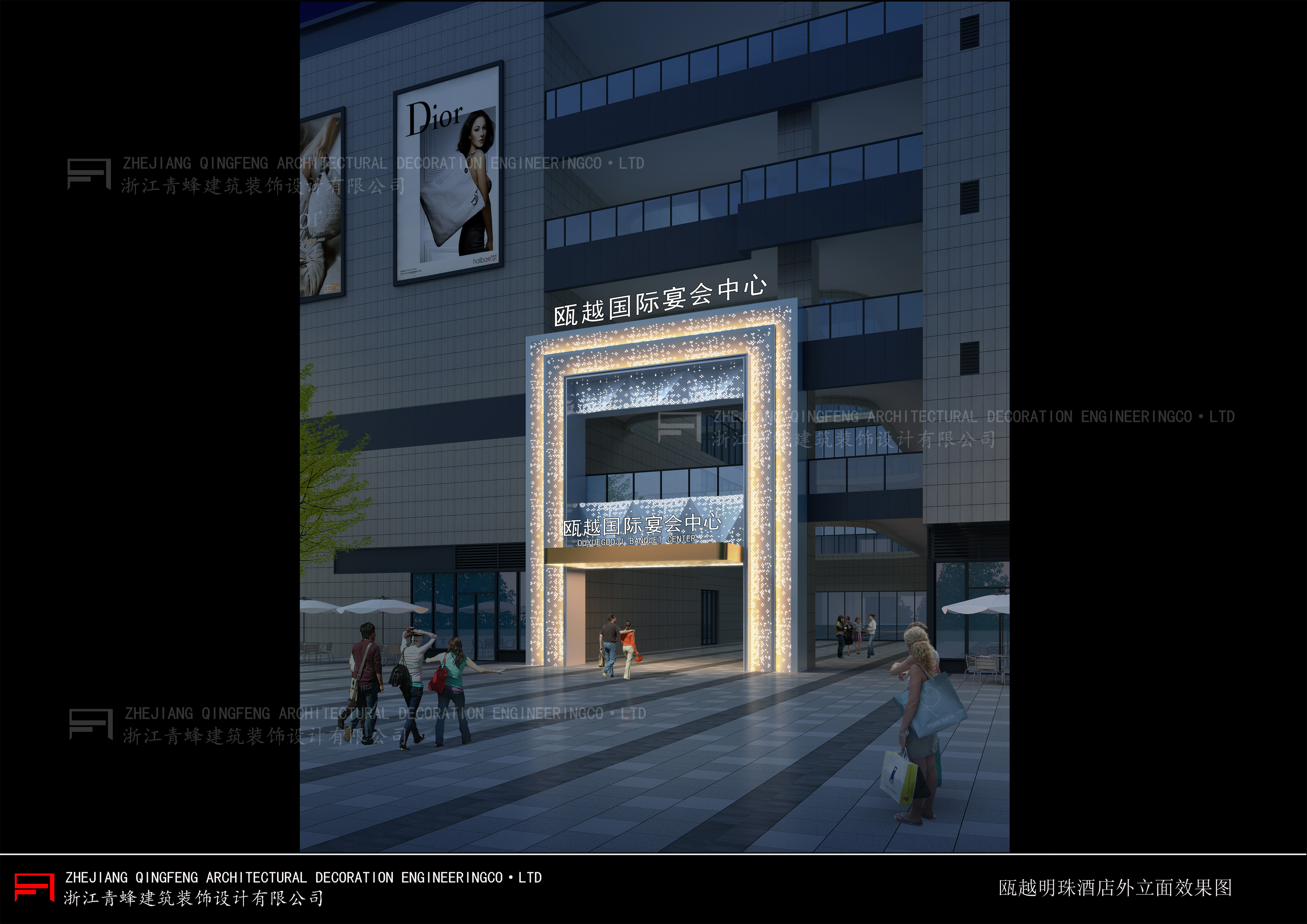 瓯越明珠宴会中心是一家集宴会、会议于一体的奢华酒店,占地8000平,拥有六个多功能宴会厅,采用5D全息高端设备,25个中式包厢,满足您的全部幻想。