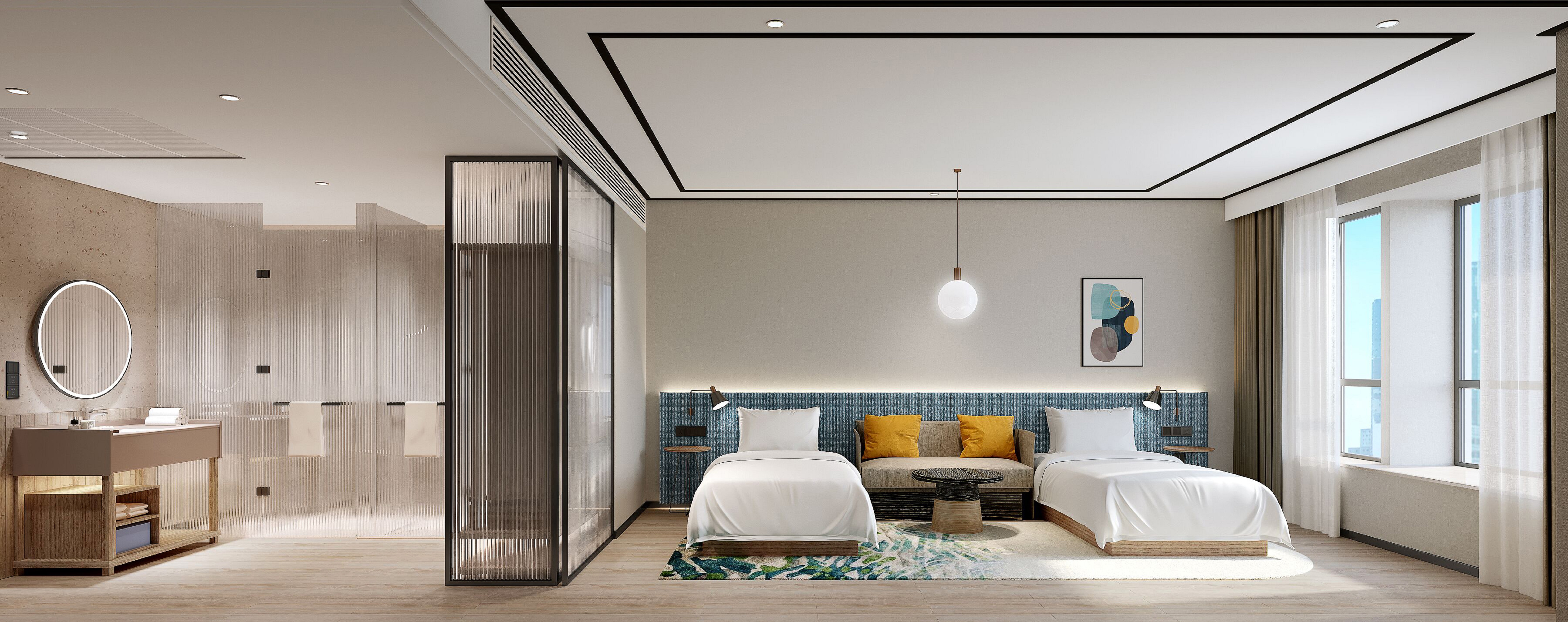 酒店拥有147间时尚优雅、设施齐全的花园客房,简约风格融入环保理念,舒适的舒达床垫助您安然入睡,让您尽享一夜酣畅睡眠。房间面积35平米,宽敞舒适,开放式的空间结合了巧妙的细节设计和浅色家具,实现最大的灵活多样性。所有房间均配备55寸液晶电视,可调控灯光,人体工学座椅,免费高速网络覆盖全酒店,让您在酒店内可轻松办公。更有71平米的尊贵套房,提供半开放式衣柜及宽大浴室,创造一个光线明亮、通透的空间,便于休息和恢复活力。