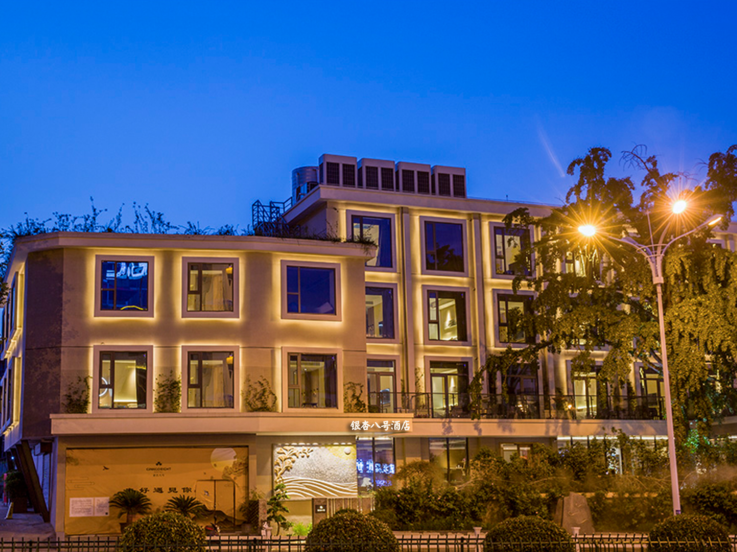 银杏八号酒店坐落于历史的文化名城江苏镇江,酒店拥有各类客房37间套、设有大堂吧、会议室、餐饮包房、多功能宴会厅、自助洗衣房、屋顶有机菜园、停车场等配套设施,毗邻高铁城际站、万达/苏宁广场,西津渡千年古街、金山风景区。酒店秉承返璞归真、回归自然,在都市摩天大楼间,成为一处世外桃花源,是您旅游度假,亲子游、商务出差的优选。