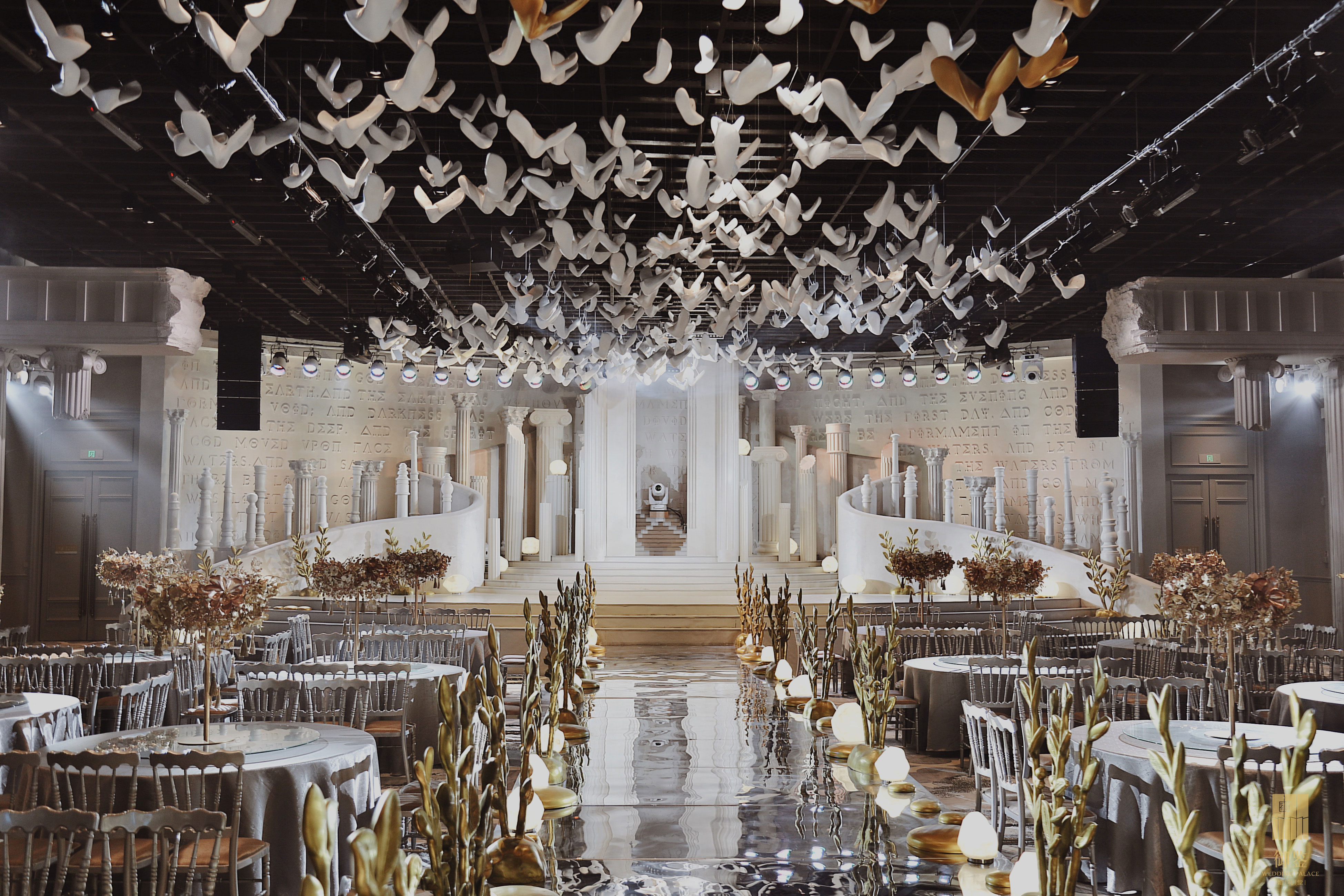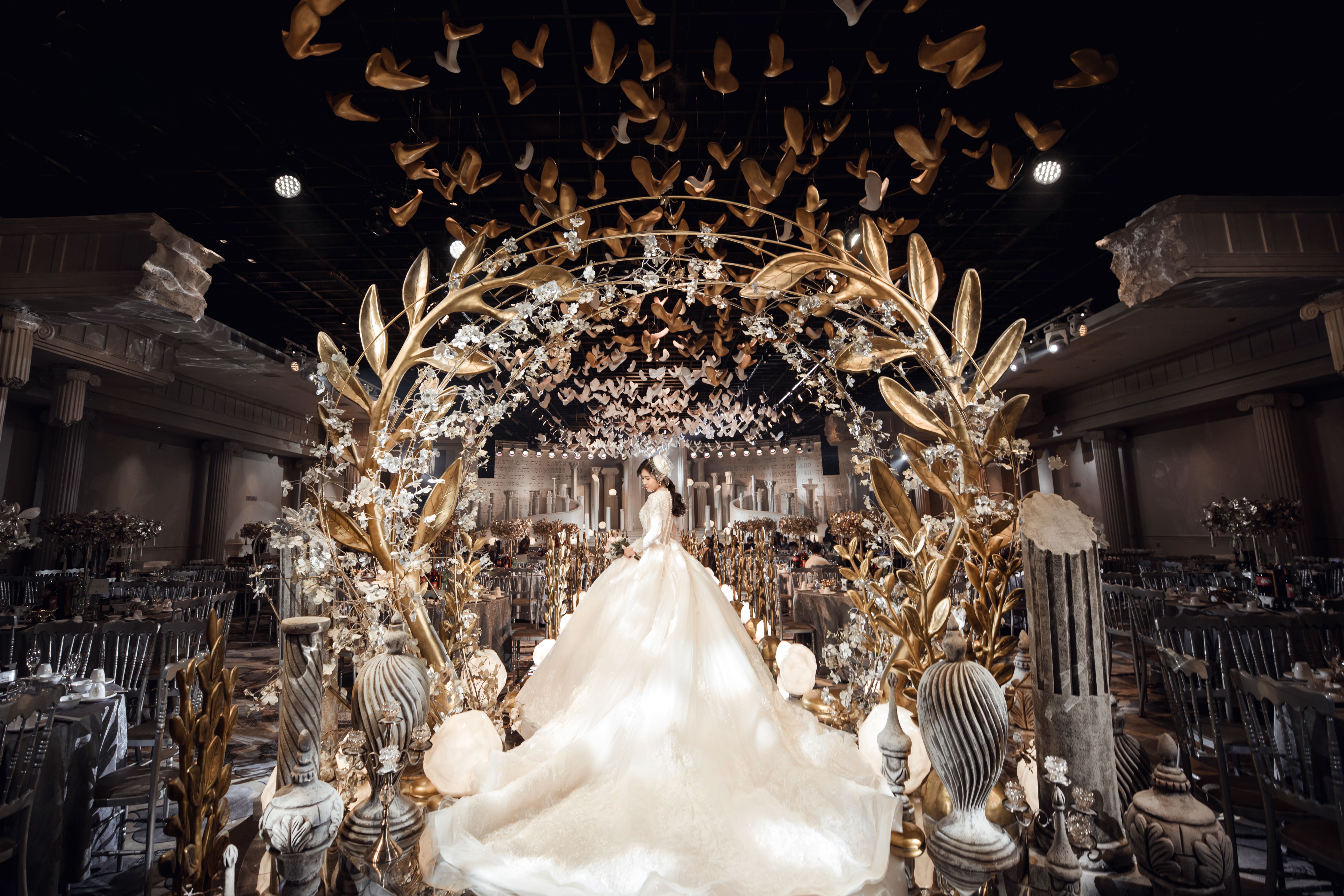 御鉴礼宴深耕宴会业数载,用主题地产商业思维实践落地,坚持用:“一砖一瓦皆为项目而生”的研发设计宗旨,智慧建造集建筑、人文、美学于一体,功能设施完备的全品类服务模式的宴会酒店,其中御鉴婚宴完美契合了:“人、场、景、境”的宴会导演思维,摈弃传统婚宴的装饰堆砌,将空间装饰设计是为了更好融合仪式感的当代宴会美学思考,在所有主题宴会厅发挥的淋漓尽致。御鉴人不断探索更适合现代新人的结婚殿堂及家·生活宴会艺术中心。