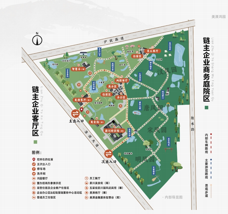 美溧鸿园,坐落于南京市溧水经济开发区淮源大道1号,总占地面积千余亩,包含中鸿商务产业 园、中鸿工业产业园和蔚川国风生态园。项目由鸿创控股集团有限公司、中鸿税务师事务所集团有 限公司和江苏蔚川酒院控股有限公司总体规划运营,受溧水经济开发区管委会委托,依托商务与 工业两大产业园招商载体,为区内主导产业进行延链、强链、补链、固链。并联合区内重要职能部门 及重点规模以上企业,搭建产业交流互动平台,为产业链链主企业提供上游供应商遴选、下游客户 深度拓展服务,涵盖精准供应链对接、协同生产、协同研发、协同销售、财务合规等深层次服务,最终建设形成规模庞大、效应显著的产业集群。