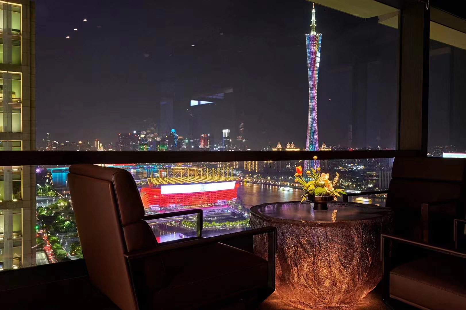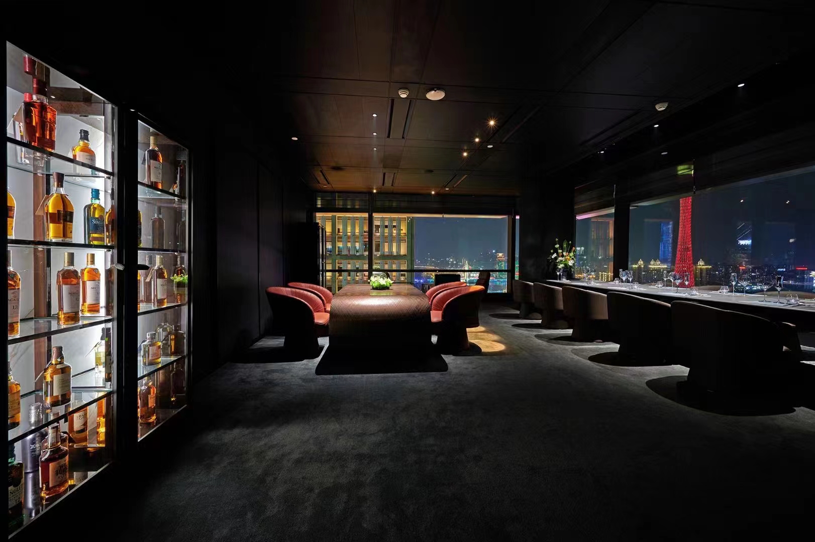 赏会所位于珠江新城临江大道1号寺右万科中心南塔26楼整层,可观赏到广州塔、广州大桥、海心桥