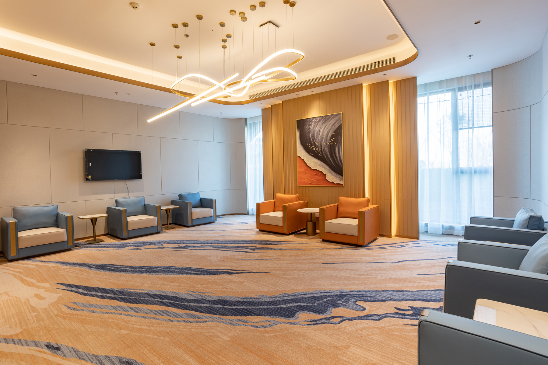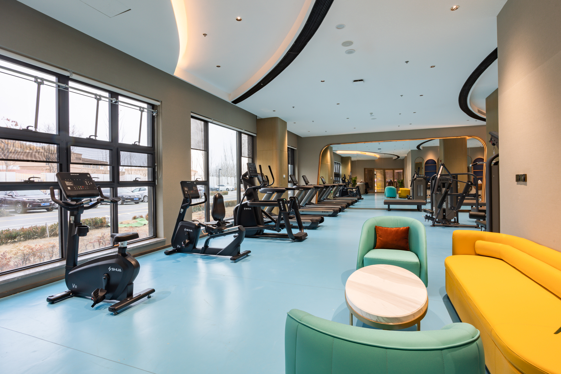 设计师采用曲线、自然、欢乐的元素,打造自然科技 X 方程式的建筑主体,装修风格以纯净简约为主。