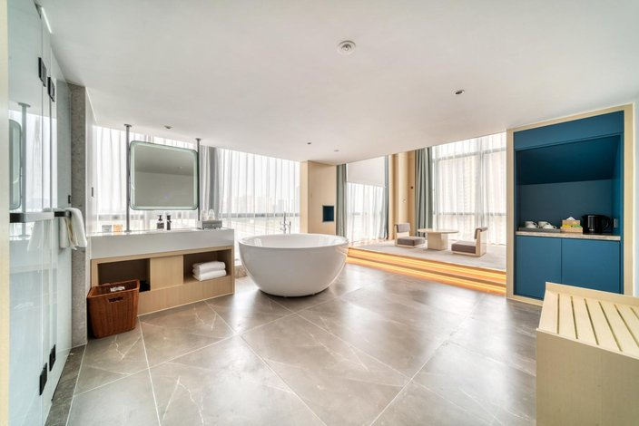 隔壁的亚运公园有着莫奈油画版的黄昏,美丽的落日剧场将会给您旅途的栖息中留下难忘的印象,和您一起重新上路【轻奢设计 光影叙事】酒店由知名设计师匠心构筑,以温润木饰与天然石材为主材,巧妙玩味光影与空间的互动,勾勒出兼具现代雅韵与温暖格调的居停氛围。