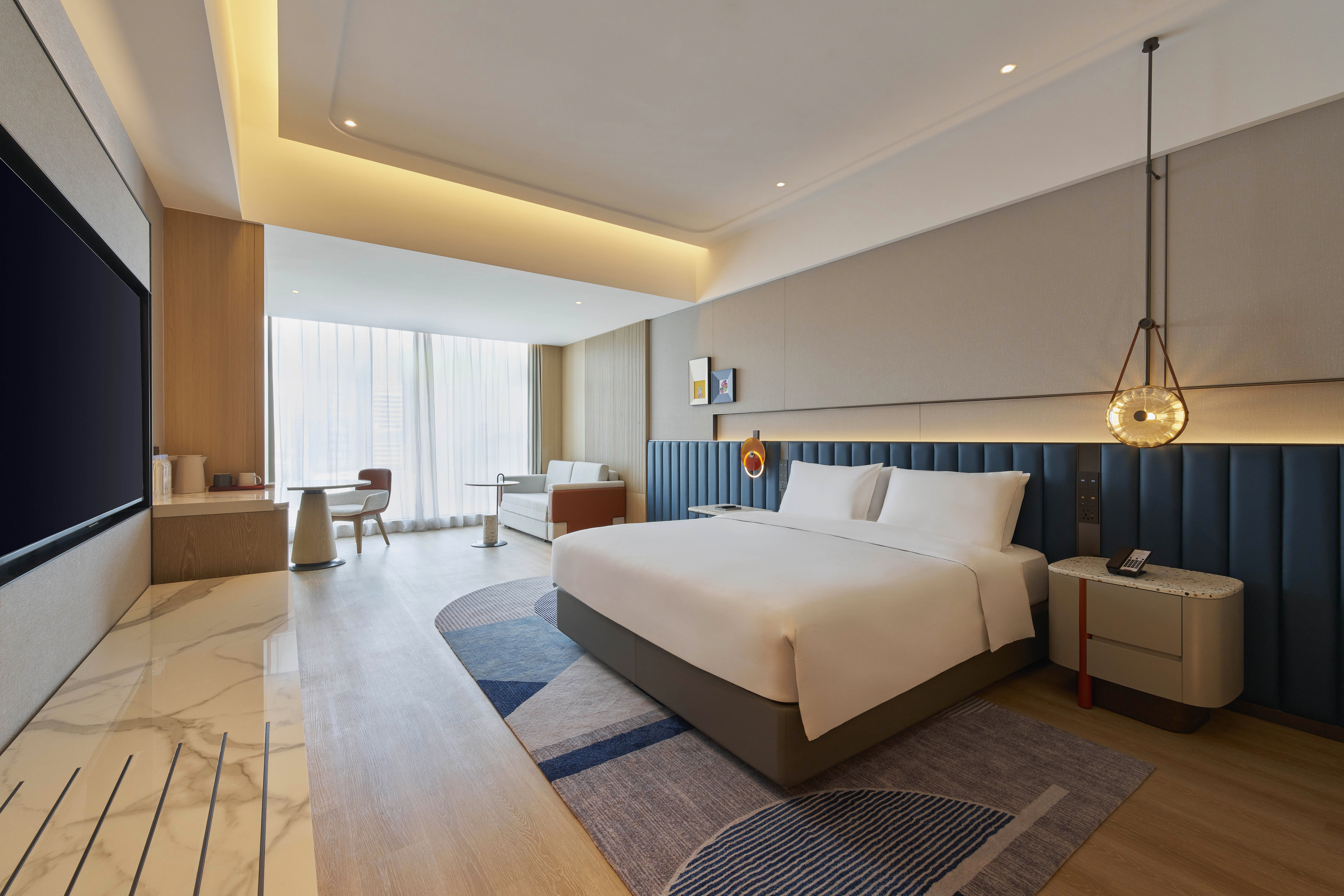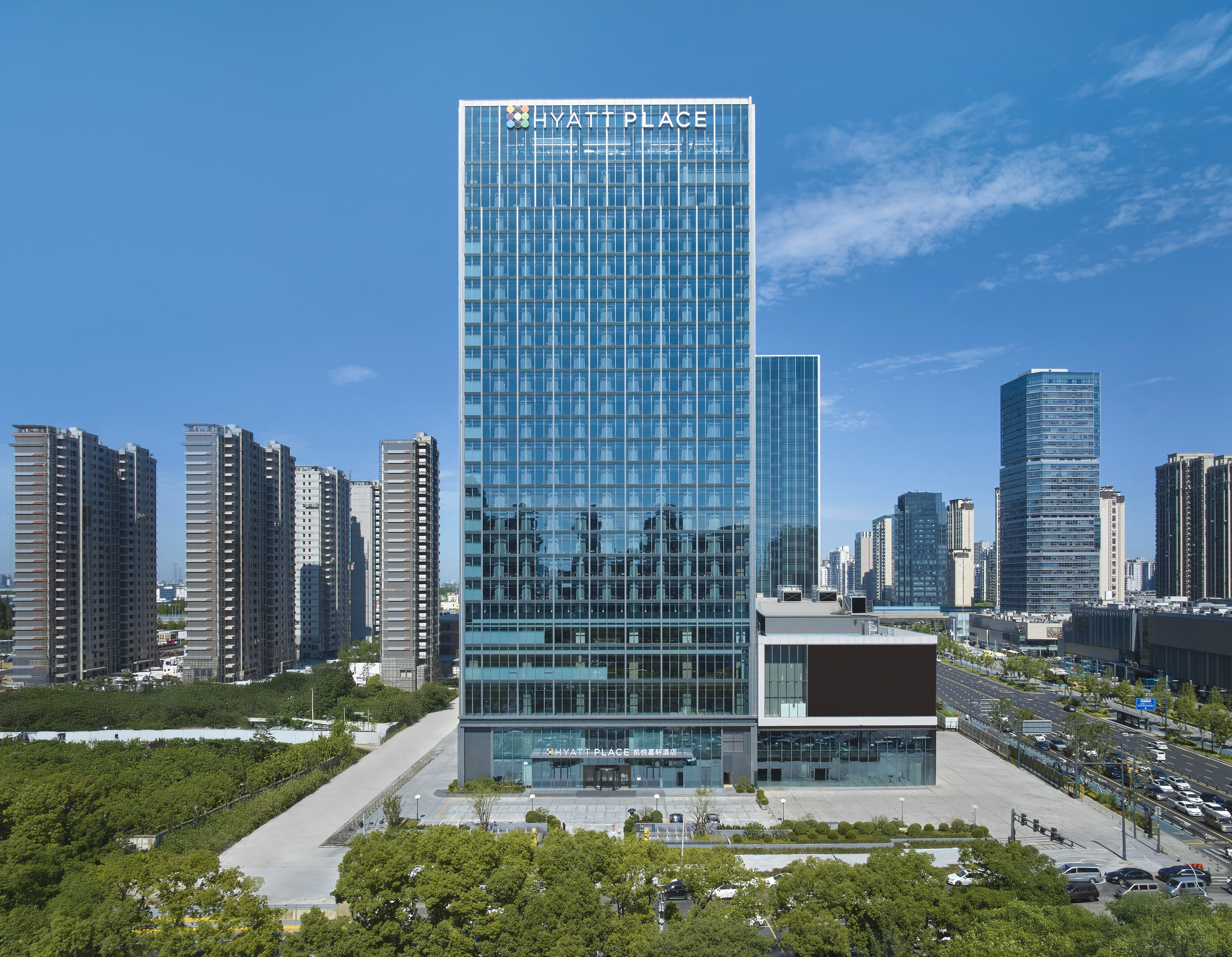 昆山高新凯悦嘉轩酒店位于昆山高新区,北临前进西路,东临鹿城路,西侧靠近城市中环线,场地位置优越,交通便捷。是由一醉集团有限公司投资兴建的大型综合体项目皇冠国际城市广场高端酒店集群中的国际品牌酒店(四星级)。凯悦嘉轩酒店是凯悦酒店集团旗下专注高端精选服务的品牌,品牌一直以来秉承着凯悦享誉全球的真诚款客精髓,为商务及休闲旅客提供高端现代的设计、轻松融洽的氛围和实用完善的设施。昆山高新凯悦嘉轩酒店以现代典雅的建筑设计为基调,巧妙把握功能与实用性的融合,内部设计结合“昆曲”的灵动及色彩元素,风格时尚简约,是集商务、会议、休闲为一体,拥有各式舒适宽敞的精美客房409间/套,并设有精致时尚的全日餐厅、大堂吧、贴心的各类餐饮服务、有氧健身房、多功能会议设施、灵活社交空间等场所将为宾客提供休闲舒适的住宿体验,大型的地下车库、现代化通讯24小时酒店全程服务等基础设施,为您的生活提供一应俱全的便利,是您理想的商务活动及团体会议活动的优质选择。