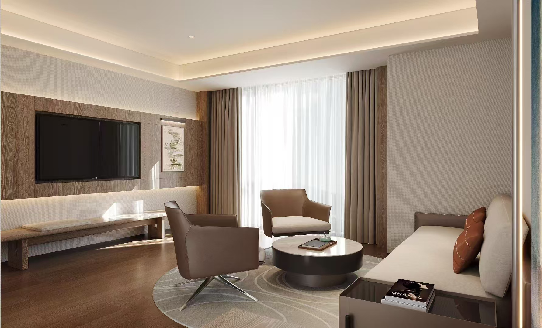 一层大堂以“清泉石上流”为理念,配备生活休闲区与书吧,借自然之美诠释人文意境,为宾客带来清新天然的入住体验。