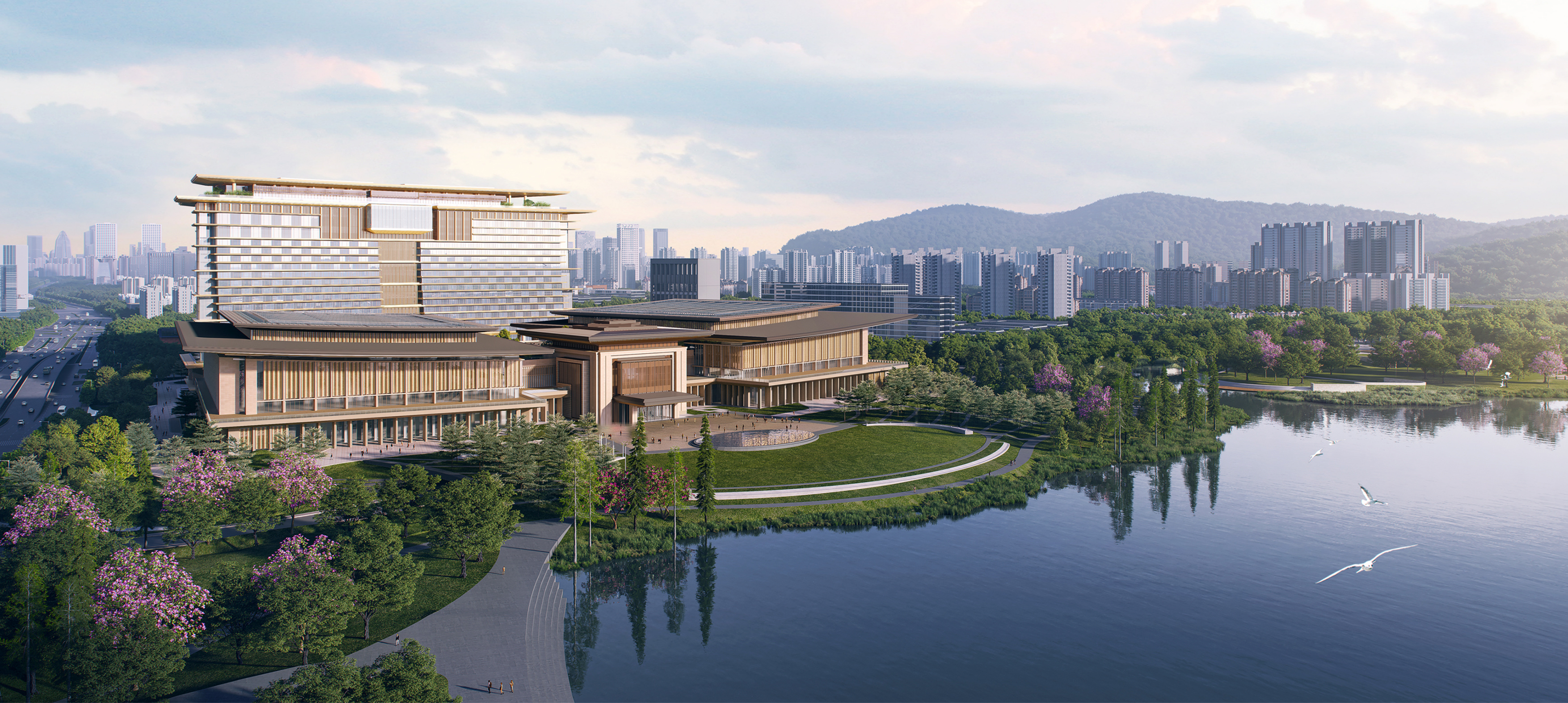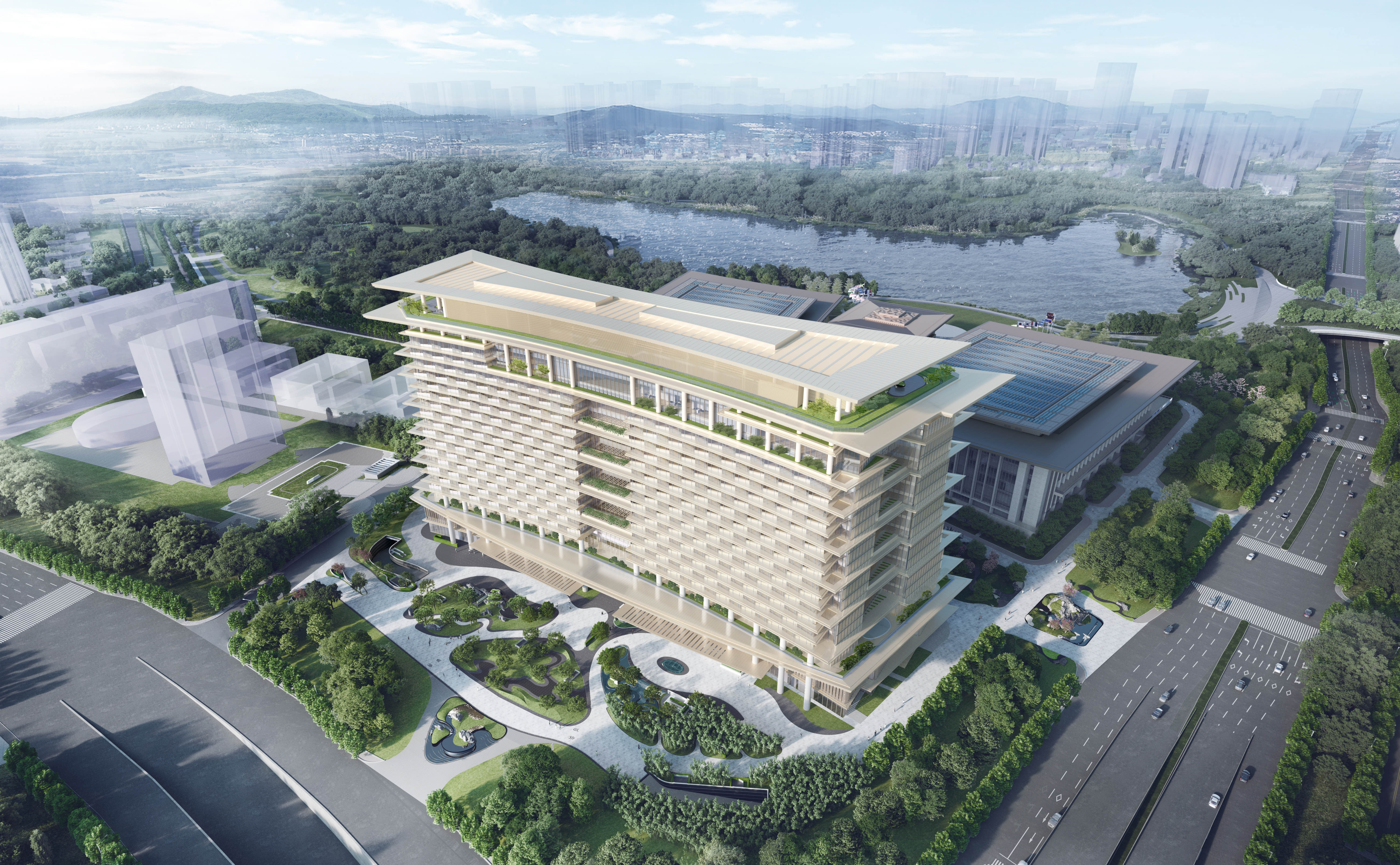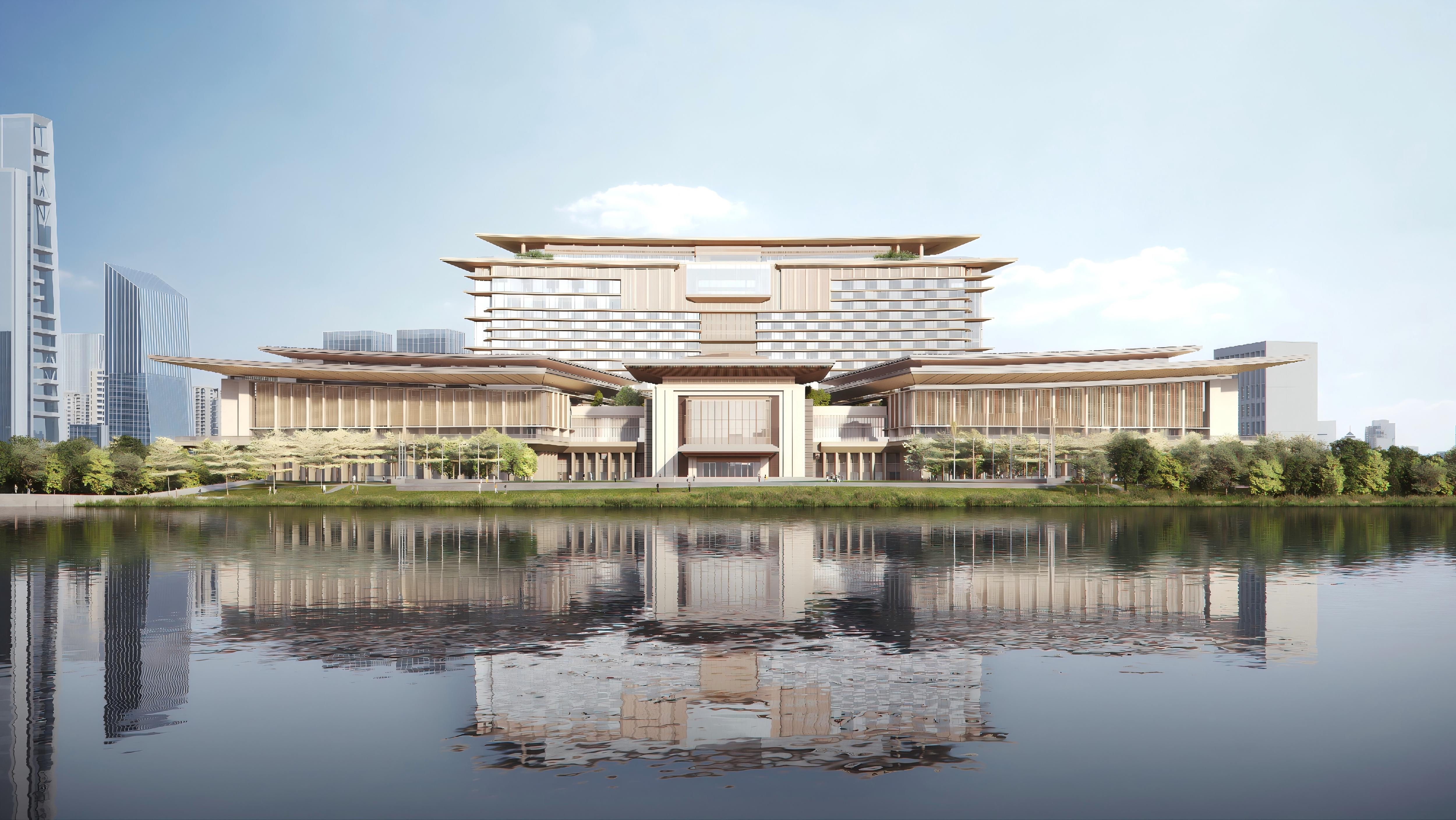 深圳国际交流中心作为具备“世界眼光、中国气派、岭南风格、深圳特色”的全球领先型会议综合体项目,既是承载活动的交往平台,又是展示深圳发展动能及成果的核心窗口。项目由会议中心与配套酒店两大功能板块组成,会议中心建筑面积约22万㎡,配备5200㎡宴会厅、4000㎡会议厅等70余间会议室,可承载万人级会议与精品展览,其中配套会议酒店(五洲香蜜湖酒店)527间客房,可满足会议、餐饮及住宿等一站式需求。