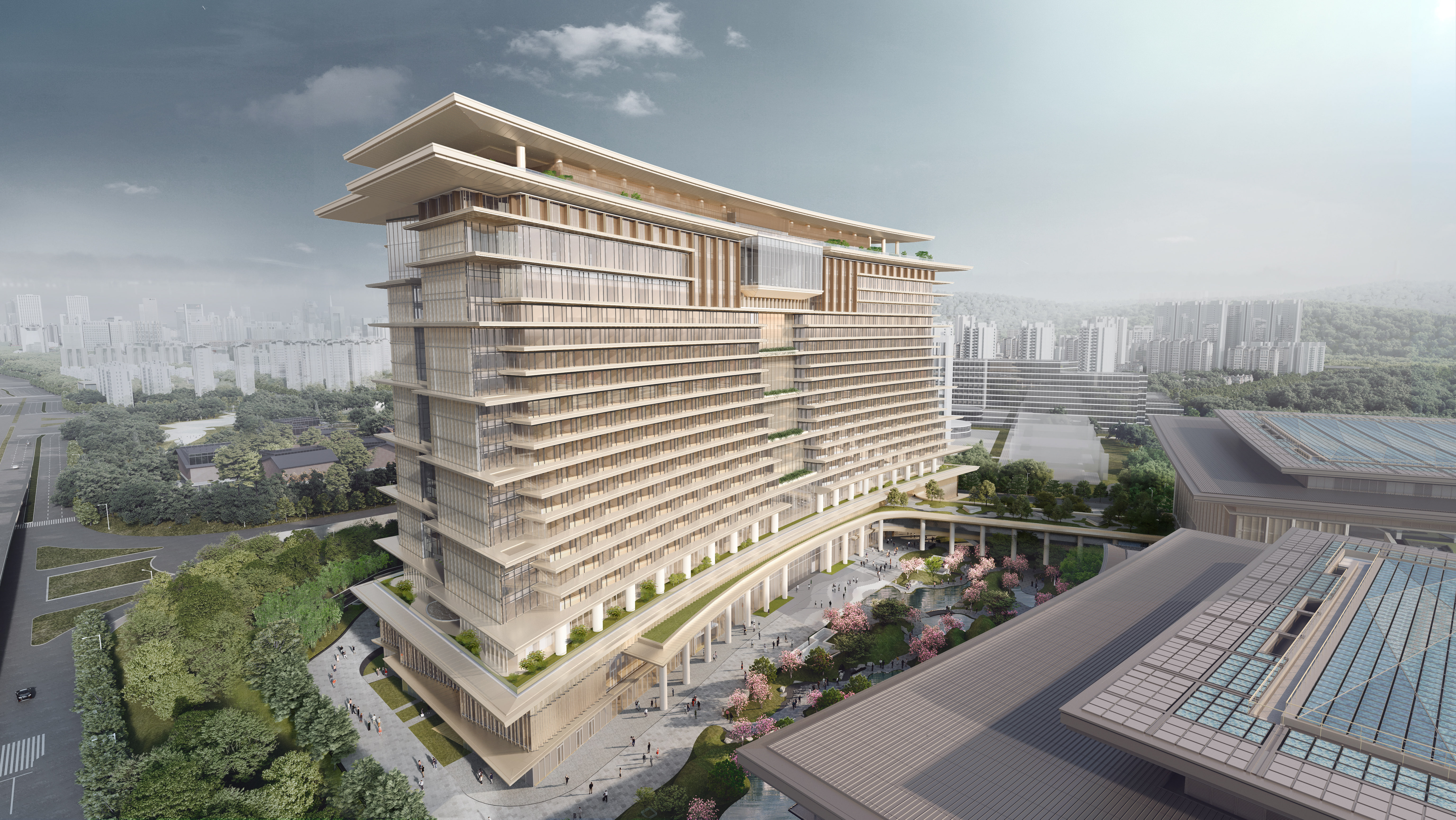 五洲香蜜湖酒店设有527间客房,配备多元化的餐饮空间(西餐厅、中餐厅、特色餐厅、酒吧、大堂吧),满足不同规格与主题的用餐需求,通过风雨连廊与会议中心无缝衔接,实现会议与住宿的高效互通。作为深圳市重点打造的复合型高端会议综合体配套酒店,以国际一流的硬件设施与卓越的服务体验,力争成为深圳国际交往的重要载体,迎接全球八方来客。