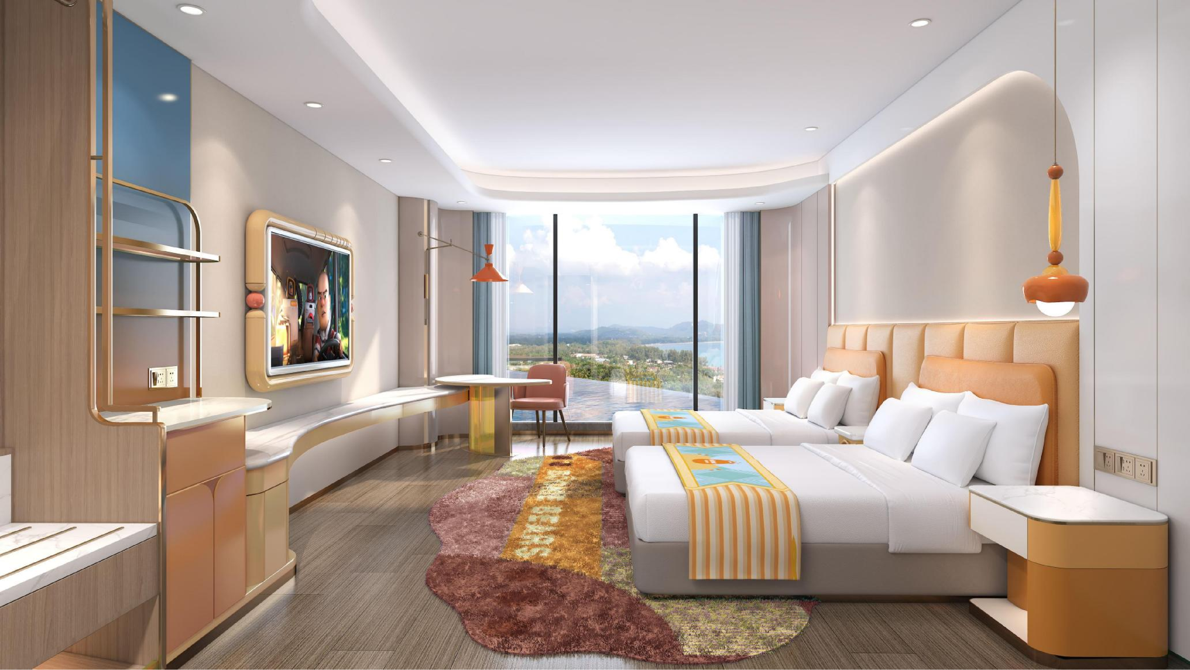 华强方特旗下以熊出没IP为核心的主题酒店品牌,坐落于湖北省孝感市临空经济区,占地面积达60721平方米。酒店拥有396套各类主题客房,餐厅设施完备,设有全日制餐厅、熊熊亲子餐厅以及中餐VIP包厢,餐位超过800个,能确保每位宾客都能寻觅到合自己口味的美食。