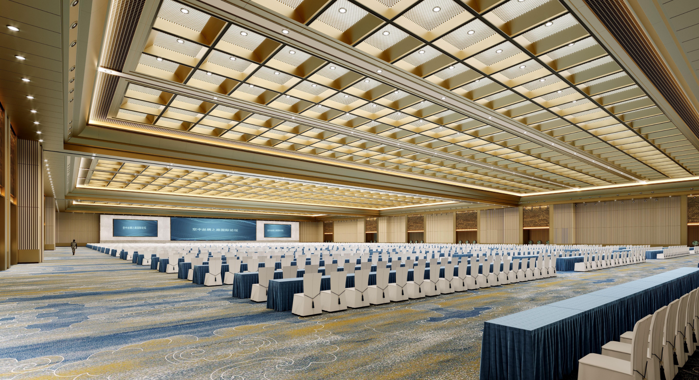 郑州国际文化交流中心坐落于郑东新区龙湖北岸,是总建筑面积约 31 万平方米的会议、展览、餐饮、酒店综合体项目。项目配套会议中心(约 5.95 万平方米,含 35 个会议空间、2 个2,500平方米主会议厅、1个830平方米午宴厅)、会展中心(约 4.2 万平方米,含近 1 万平方米无柱多功能展厅及多规格功能空间),同时配备全服务配套及休闲设施,可全方位满足峰会、展会、宴会、会议等各类高端活动需求。该项目由国内领军、国际领先的会展产业链链主企业首都会展集团负责运营管理。