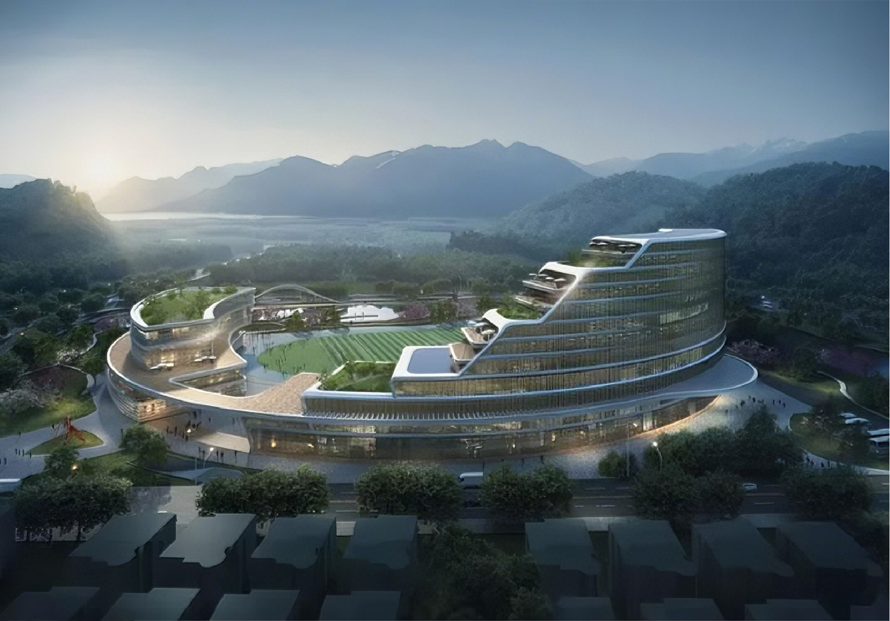 The QUBE Hotel Ningbo Bay features a dynamic, yacht-inspired design nestled along the waterfront. Its embracing architectural form symbolizes a blend of sports spirit and coastal culture, creating a vibrant destination that integrates accommodation, sports, and leisure.