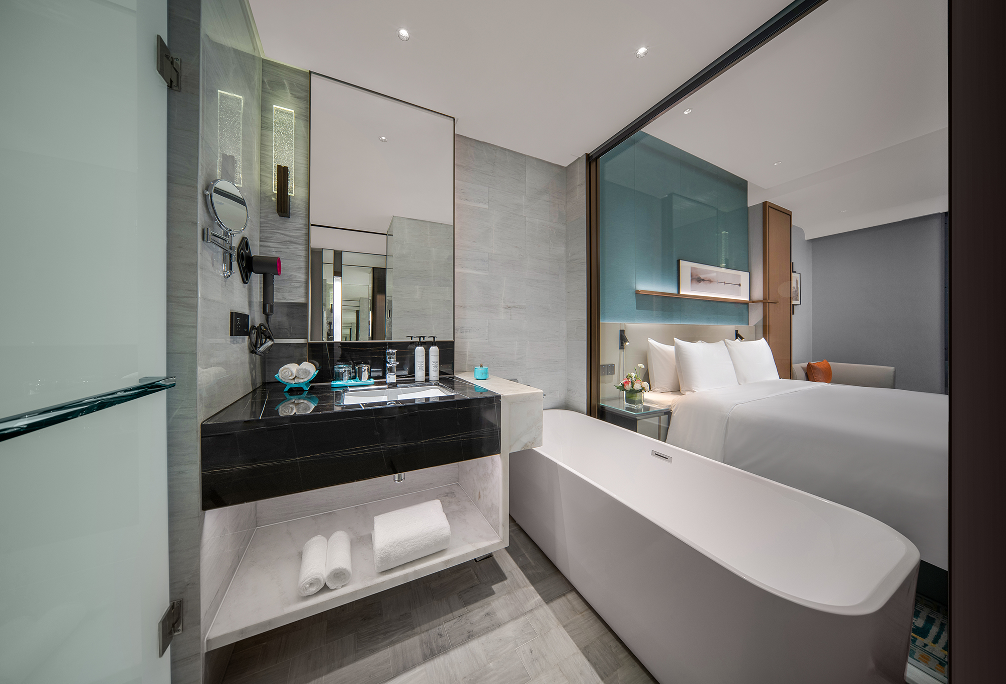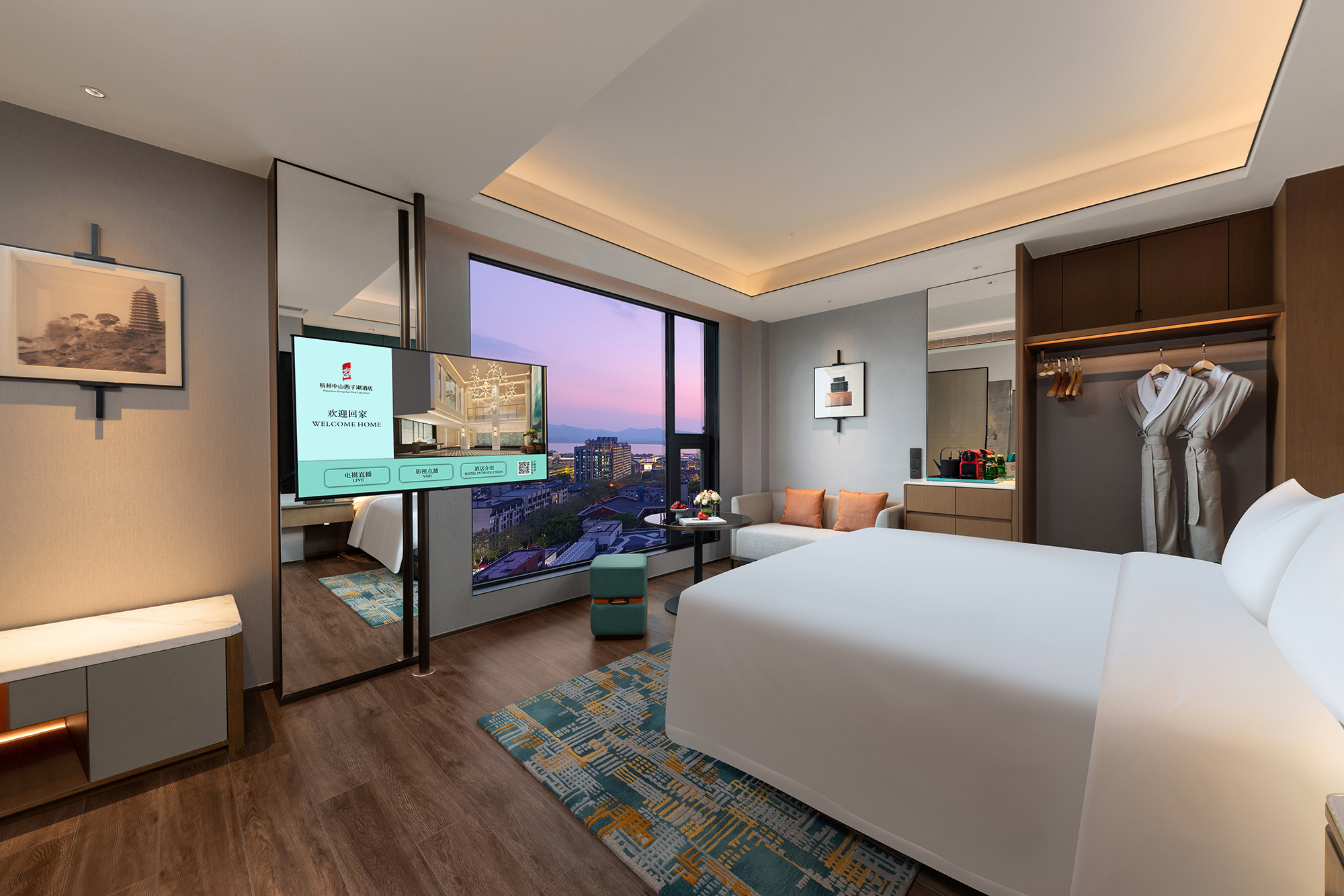 酒店位于杭州市上城区,邻西湖景区和灵隐寺等诸多旅游景点。酒店拥有287间豪华客房,落地窗可俯瞰西湖一览美景,人景合一。客房装修充分融汇了西方美学的优美和华夏文化的典雅。所有房间均配备戴森吹风机、JBL音响、胶囊咖啡机、定制手工地毯等高端设施,并开通了多个卫星电视频道。宽敞的浴缸和热带雨林式沐浴设施,舒适的工作空间,以及高速网络、健身房、自助洗衣房等,让入住酒店的宾客尽情享受一场奢华、高效、轻松的生活体验。