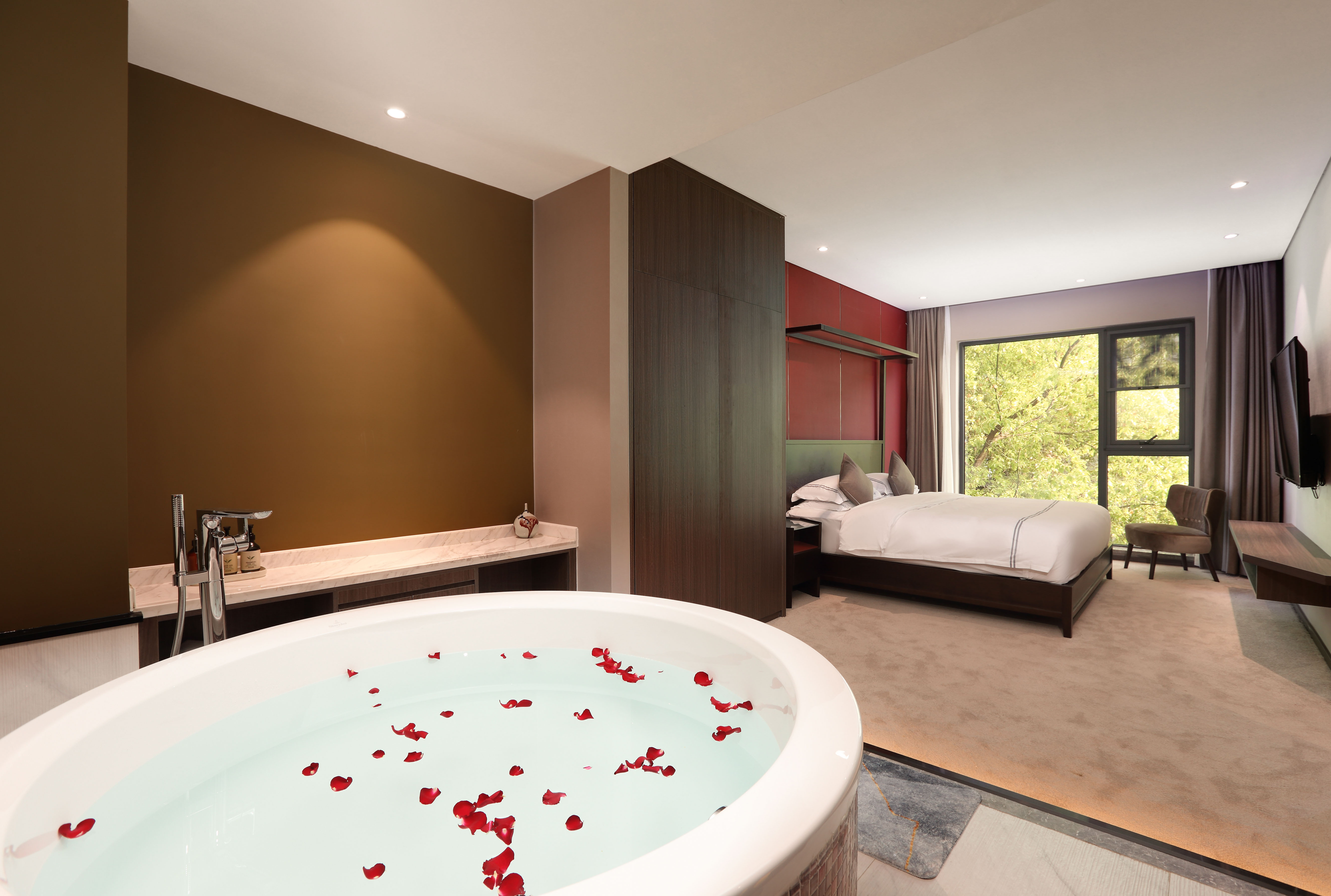 苏州华侨饭店庭园古朴雅致、台阁楼榭、廊回曲折,鲜明的中式装饰风格与现代设施融汇一体,尽显吴文化特色。